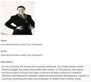 Over 75 episodes of Suzi’s wisdom can be accessed at no cost on her podcast called Innovative Influence